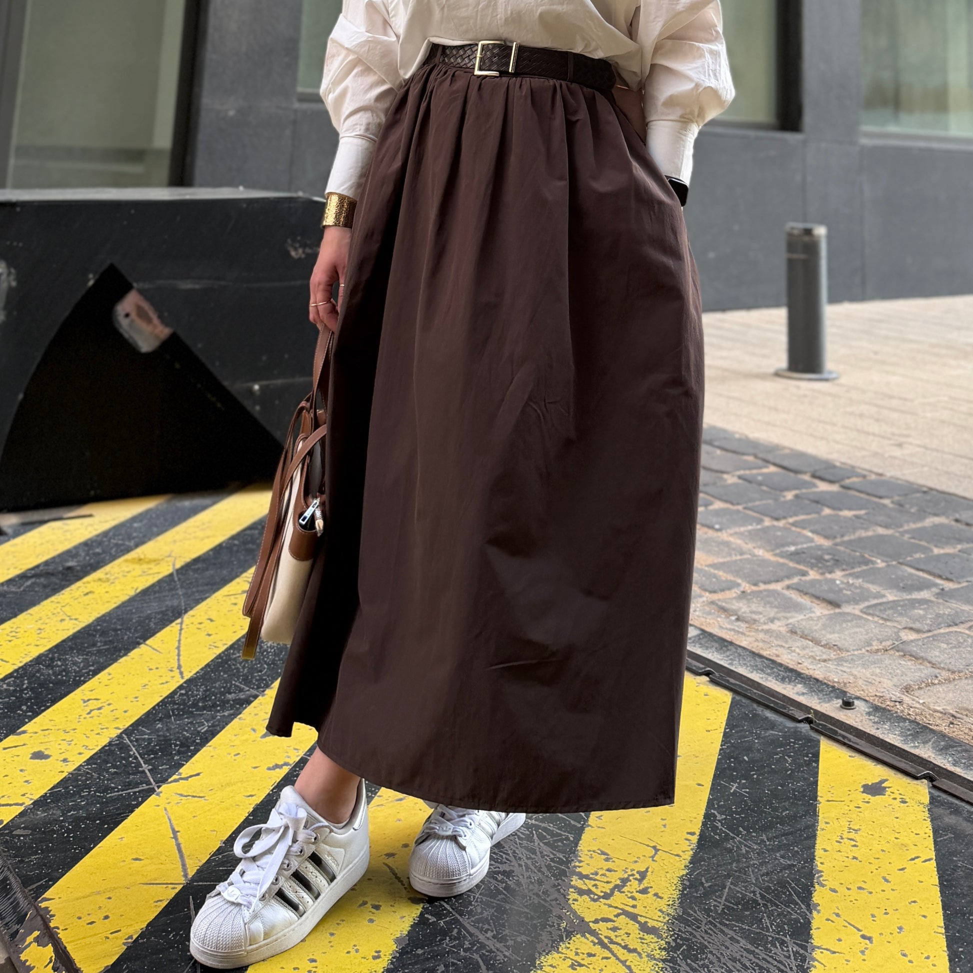 Voluminous Poplin Belted Skirt